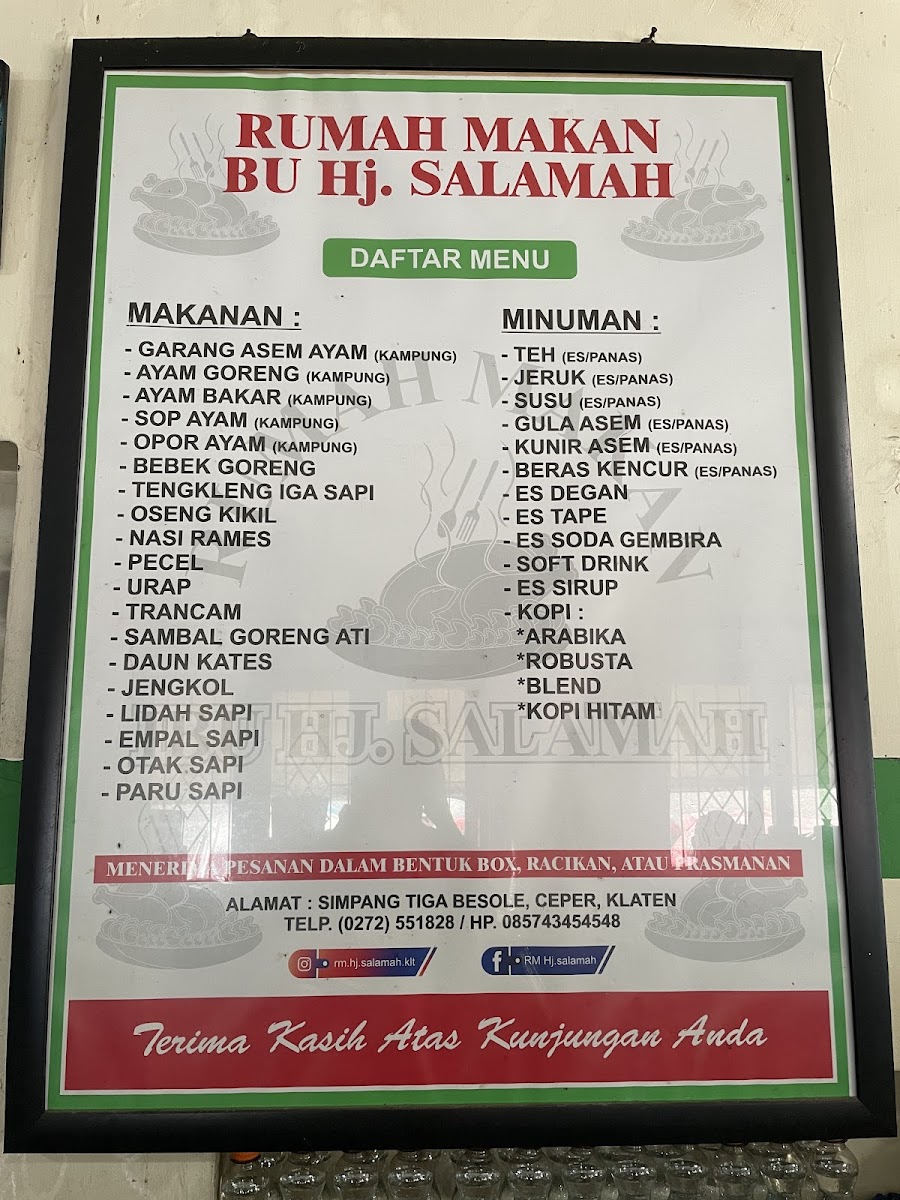 In summary, Warung Makan Bu Hj. Salamah is a must-visit destination for anyone seeking a true taste of Javanese culture. With its lovely atmosphere, delightful dishes, and devoted customers, it promises an experience that will linger in your memory long after your meal has ended. Don’t miss this gem the next time you find yourself traveling through Central Java!